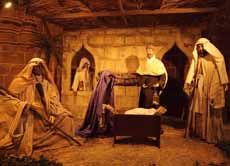 A sequence of images that depict a Nativity Scene, preparations for a service and a 60ft Sitka Spruce Christmas Tree.
