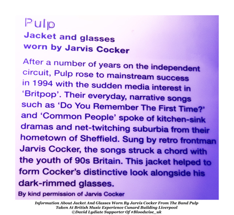 Display Paying Homage To Pulp Jacket And Glasses, Worn By Jarvis Cocker Poster Promoting Single “Miss Shapes”