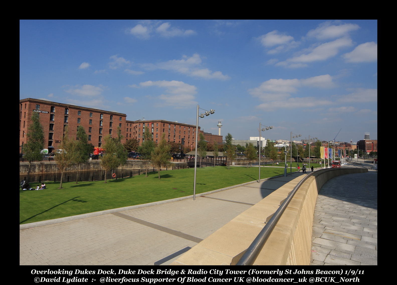 Radio City Tower formerly St John's Beacon, (centre distance, slightly towards right) and is used as a focal point beyond the bridge.