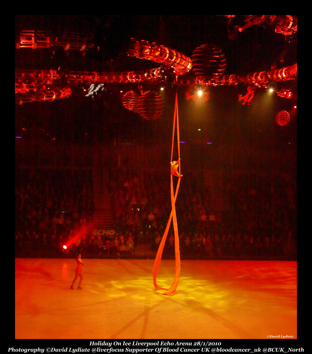I was allowed a press pass by the Dancing On Ice Organisers to take pictures from the disabled seating area, (an aeril perspective) at the Liverpool arena, . The extra dimension and impact recorded in the images from this angle helped me raise more awareness for Blood Cancer UK.