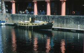 The dock’s stunning water reflections from the various rich red columns, enhances