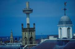 Bottom Row, Right - View from Anglican Cathedral, looking towards Pier Head. Left - Top of Hope St looking towards New Brighton.