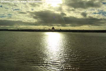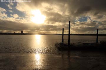 Photographs depicting the sun passing through the moody clouds looking towards Birkenhead taken from Liverpool's Pier Head