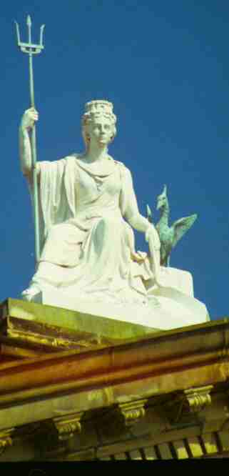 Description - Has been described as an example of Liverpool as a colossal female, wearing castellated crown and laurel wreath